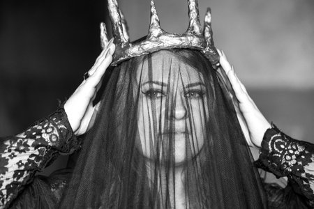 Crowned woman on Halloween night: a gaze through the veil, mysterious queen