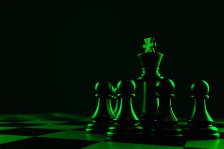 Wooden chess in a contrasting light. A game of chess, an intellectual competition, a concept of strategy and long-term planning. Black figure