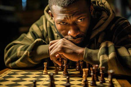 Close-up hand makes a pawn move, chess, chessboard, game, confrontation