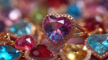 This image features a beautiful heart-shaped ring surrounded by vibrant gems, capturing the essence of luxury and romance in exquisite detail.