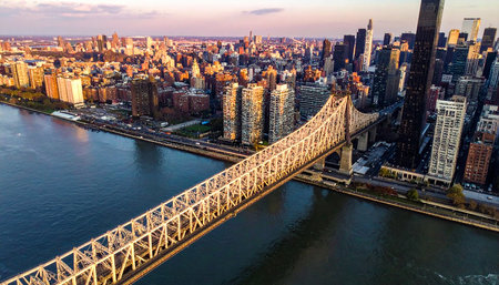 Aerial view of the Ed Koch Queensboro Bridge over the East River in New York City