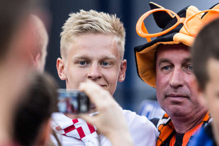 Kharkov,Ukraine - June 13, 2012: Supporters of the National Soccer Team of the Netherlands, dressed in orange, being the National Color