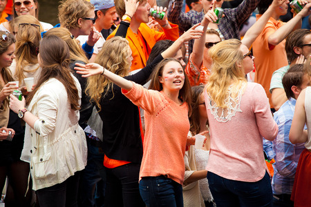 AMSTERDAM, NETHERLANDS - APRIL 30, 2013 : People in orange celebrating in Amsterdam during the coronation of the new king Willem Alexander from the Netherlands.