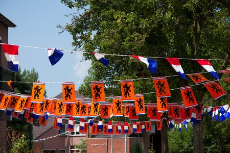 neighborhood arts for Dutch celebration for football or Queens day against a blue sky