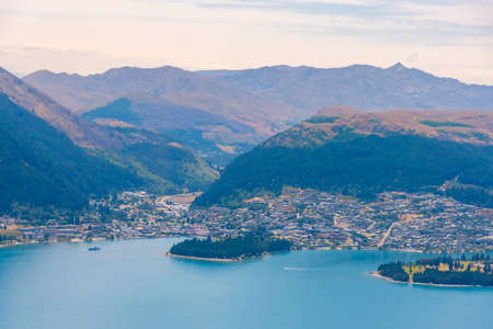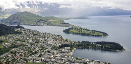 The amazing Top View of Queentown New Zealand, and the Queentown bay with Lake Wakatipu.