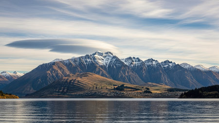 Serena beach in Queenstown Bay, New Zealand., generative AI