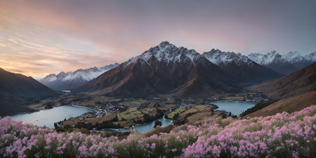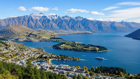 Stunning panoramic view of Queenstown and Ben Lomond Trail., generative AI