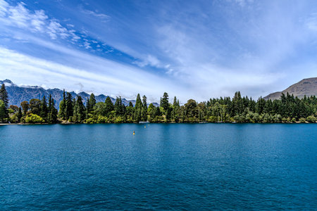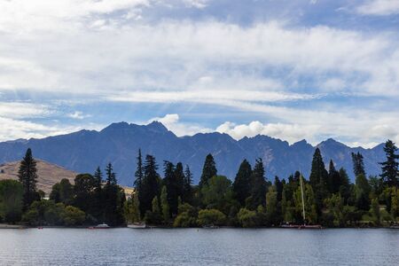 QUEENSTOWN, NEW ZEALAND - OCTOBER 10, 2018: View of the lake Wakatipu. Copy space for text