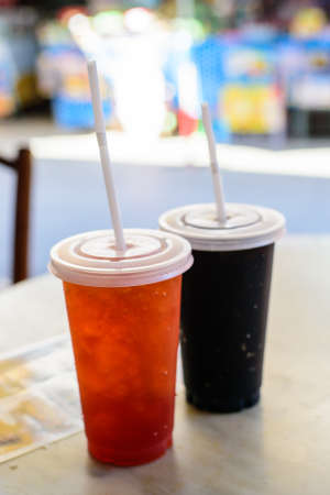 Fresh ice tea in plastic glass
