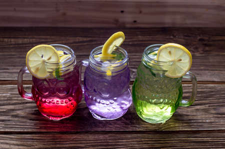 Refreshing colorful drinks with ice in vibrant hues for a summer delight