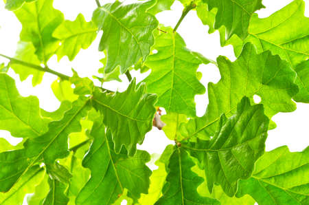 Green oak leaves and acorn
