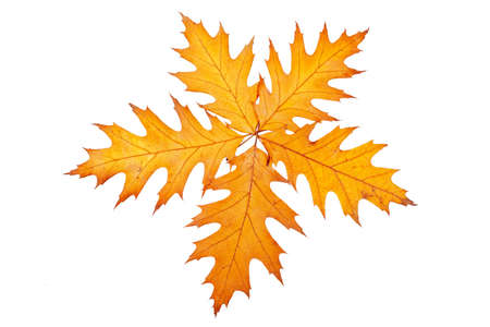Autumn and fall composition. Beautiful orange oak leaves in the park. Fall concept and natural background.
