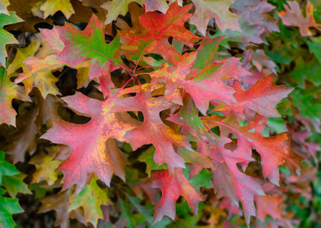red oak leaf. natural landscape in autumn. autumn beauty of nature. fall season. nature in the forest. autumn forest. nature in fall season. autumn season in the park. seasonal leaves and trees.