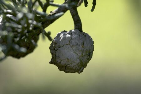 Macro Still Life of Natural Dried Oak Galls (Quercus infectoria) Showing Woody Structure and Holes, Rich in Tannins for Ink and Medicine.