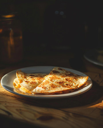 perfectly crisped quesadillas, showcasing corn tortillas filled and folded with melted cheese, set against an isolated background with ample space for text