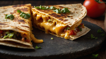 Mexican quesadilla with cheese, tomatoes and cilantro