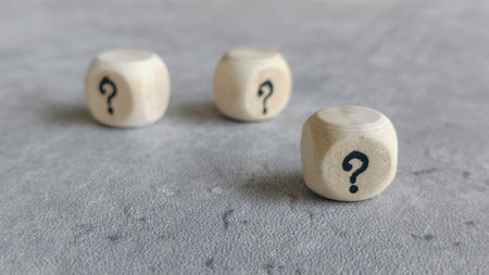 a question mark on wooden cubes. FAQ frequency asked questions, Answer and Brainstorming Concepts
