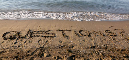 huge text QUESTIONS on the sand of the beach