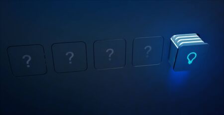 light bulb question mark icon with bright on dark background 3d render concept for asking ideas