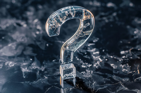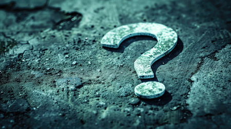 A single question mark on the ground, casting a shadow, conveys a sense of mystery and the unknown