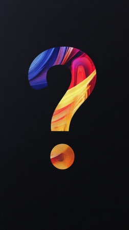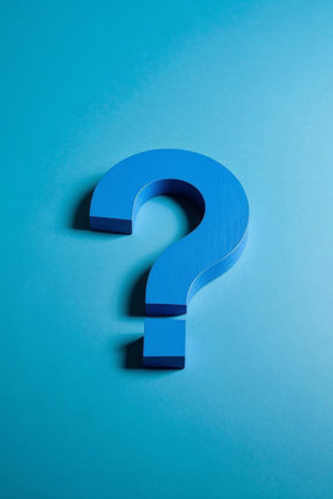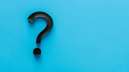 A striking black question mark on a vibrant blue background, symbolizing curiosity and inquiry. Ideal for themes of exploration and information seeking.