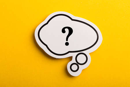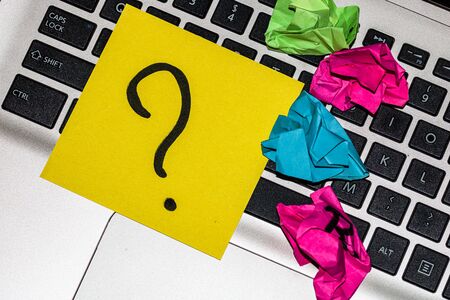 Writing on colorful sticky note a question mark. Question mark on paper.