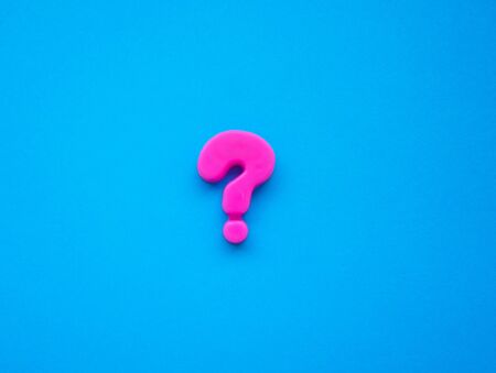 pink question mark located sideways on a blue background with copy space in a conceptual image