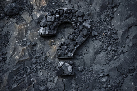 Pieces of coal artfully arranged into a question mark on a dark surface, symbolizing the questioning of fossil fuels' future