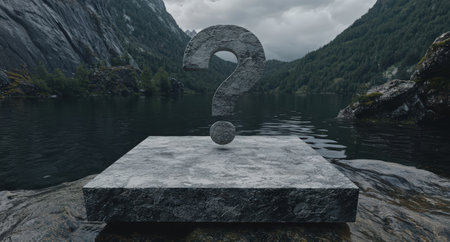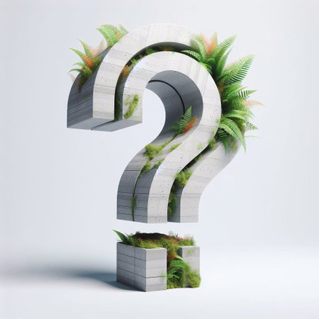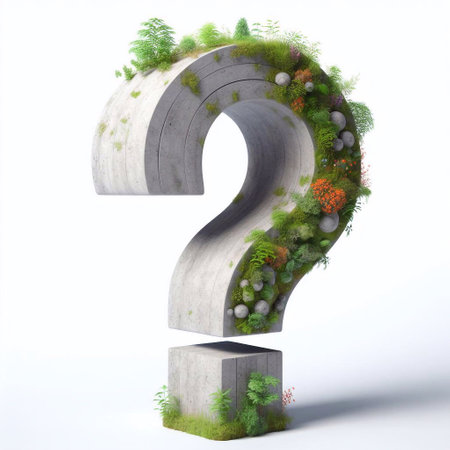 Question mark shape 3D Lettering That Blends Concrete With Nature. AI generated illustration