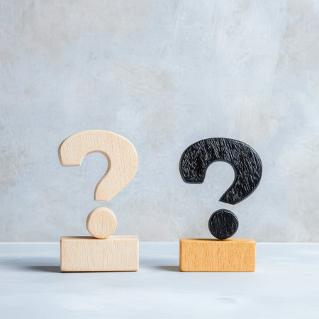 Two wooden question marks in different colors stand side by side highlighting themes of curiosity and the search for knowledge.