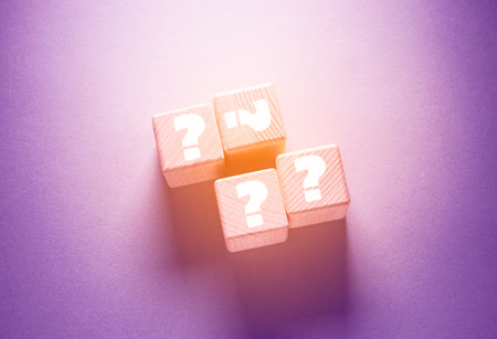 Question mark and question mark on wooden cubes with copy space. FAQ and help concept.
