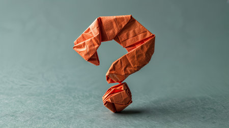 Decorative origami question mark made of red paper with copy space. Generative AI