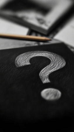 Pencil drawing of a question mark on black paper, artistic concept