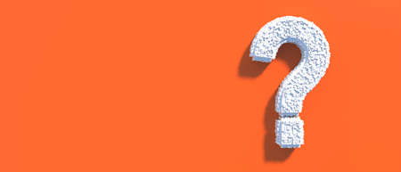 Question mark white on vibrant orange color background. Greeble, block structure character, copy space, presentation template. 3d illustration