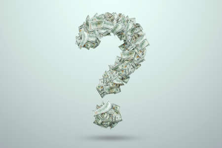 A question mark made of one hundred dollar bills. The concept of investment in a new business, new beginnings, purchases