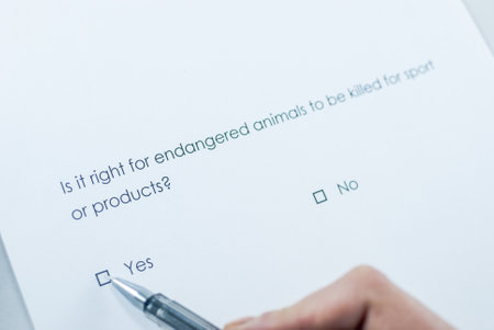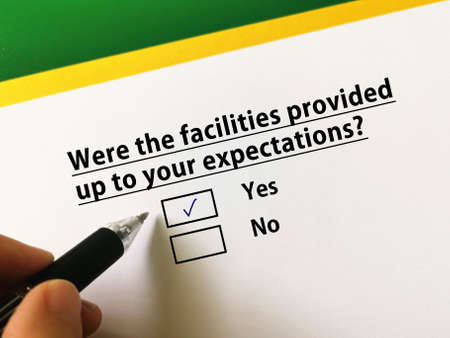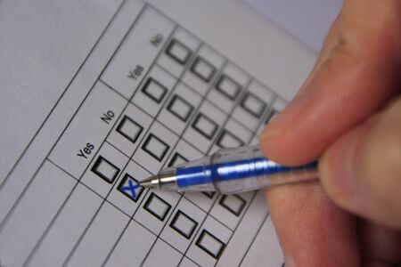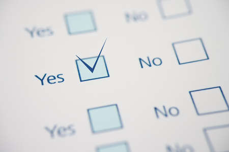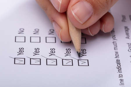 Close-up Of A Woman's Hand Ticking Yes Choice On Review Form
