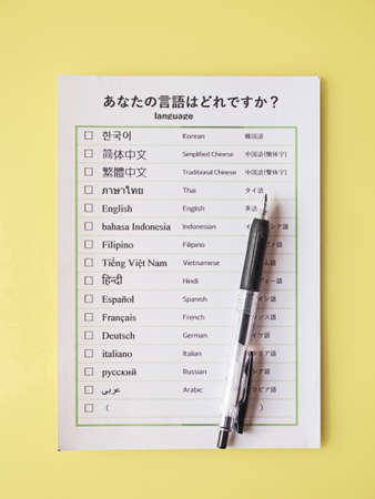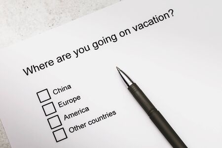 A sheet of paper with an inscription and a pen on the table. Concept of interviewing residents in travel planning