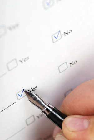 Checklist with a pen. Man about to tick a box with elegant ballpen.