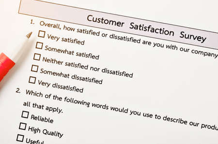 Close-up Of Woman Hand Filling Customer Satisfaction Form
