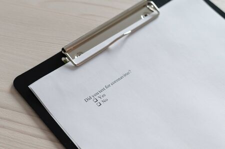 Coronavirus test questionnaire and pen on the table. Checklist for questions about covid-19.
