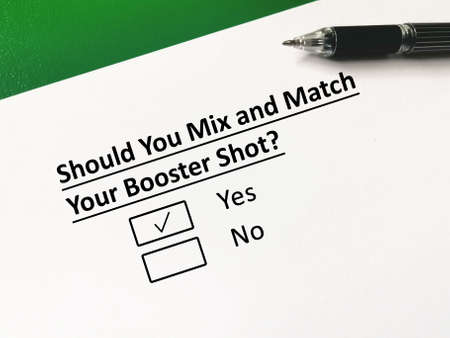 One person is answering question about mix and match booster shot. He thinks he should mix and match his booster shot.