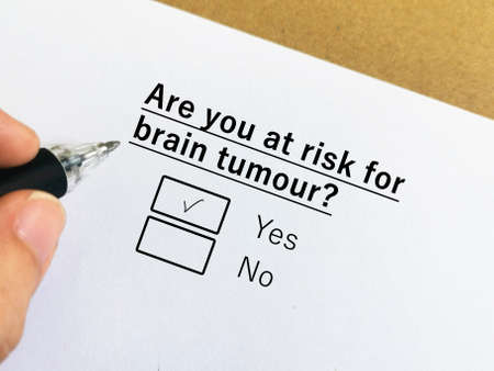One person is answering question about cancer risk. He is at risk for brain tumour.