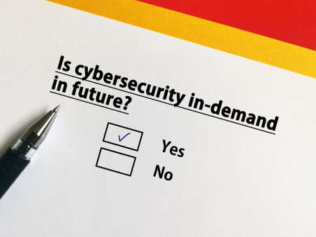 One person is answering question about cybersecurity. The person thinks cybersecurity is in demand in future.