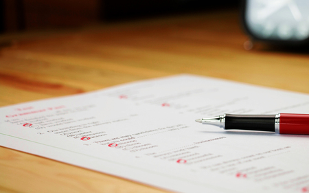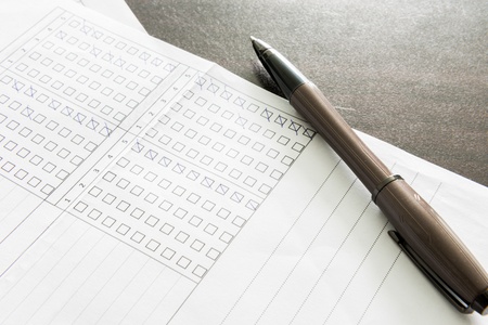Checklist with a pen. Man about to tick a box with elegant ballpen.