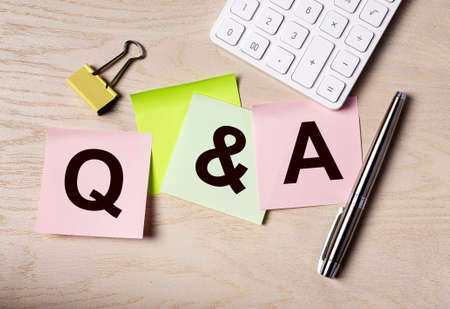 Q concept. Q and A acronym on notes on office desk. QnA.