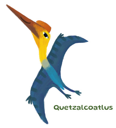 cartoon happy and funny colorful prehistoric dinosaur dino quetzalcoatlus isolated illustration for kids