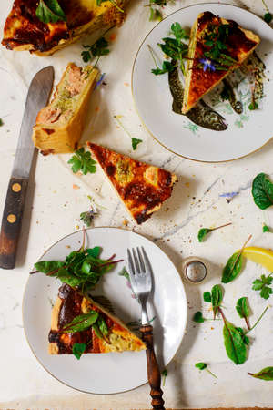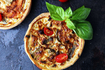 Quiche Lorraine - traditional French tart with pastry crust filled with bacon and leek