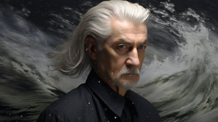 A woman with beautiful gray hair gazes into the distance, her expression thoughtful. The soft lighting highlights her features, creating a warm, serene atmosphere.