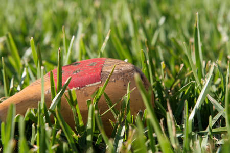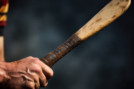 close-up of a hurling stick hurley hitting a sliotar, created with generative ai