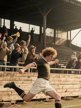 soccer or football player in action kicking ball with fans in background